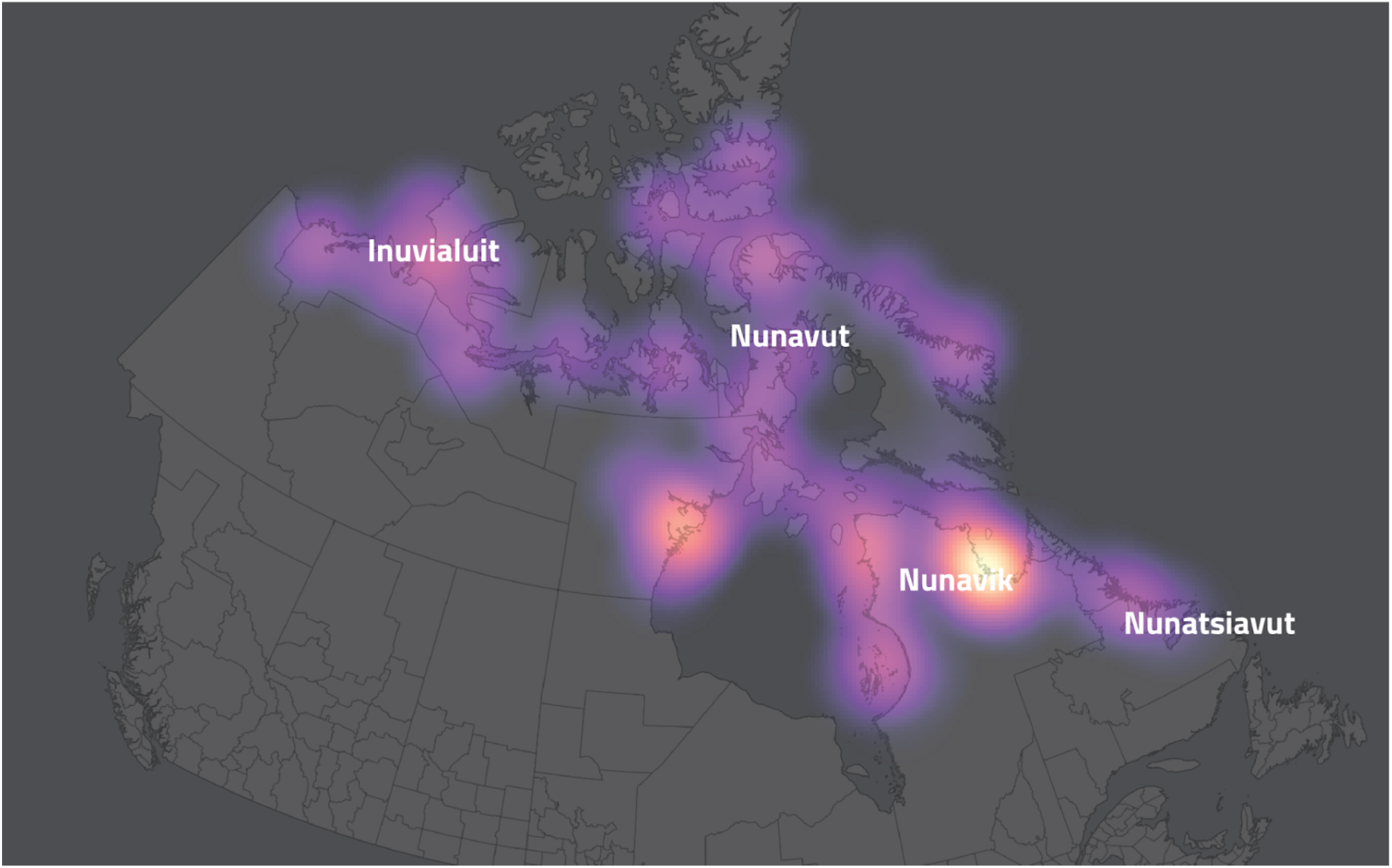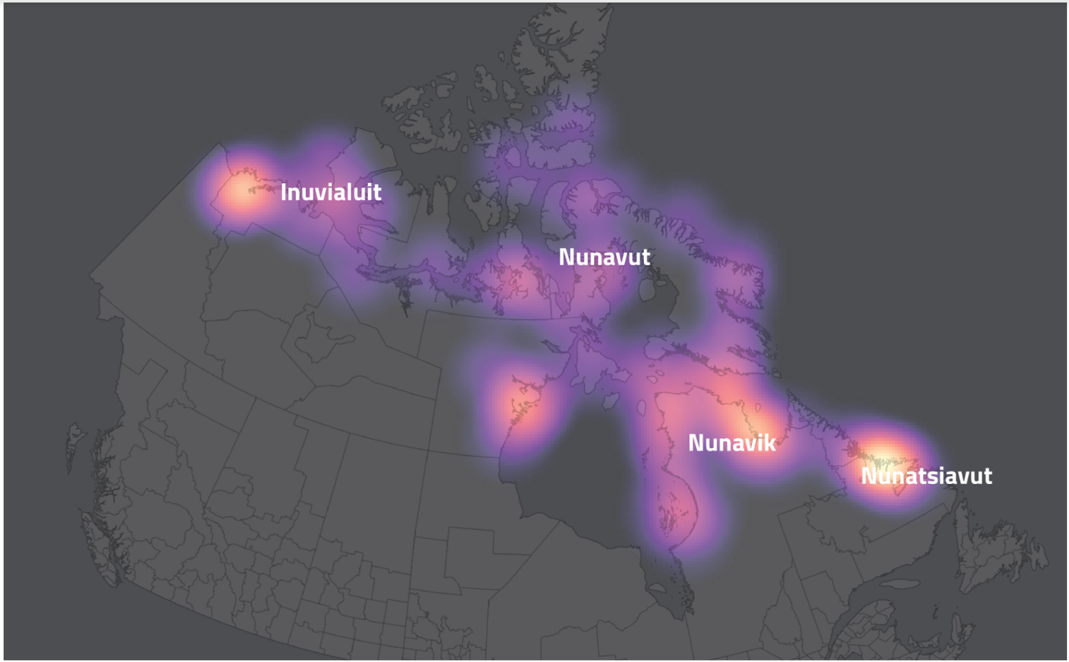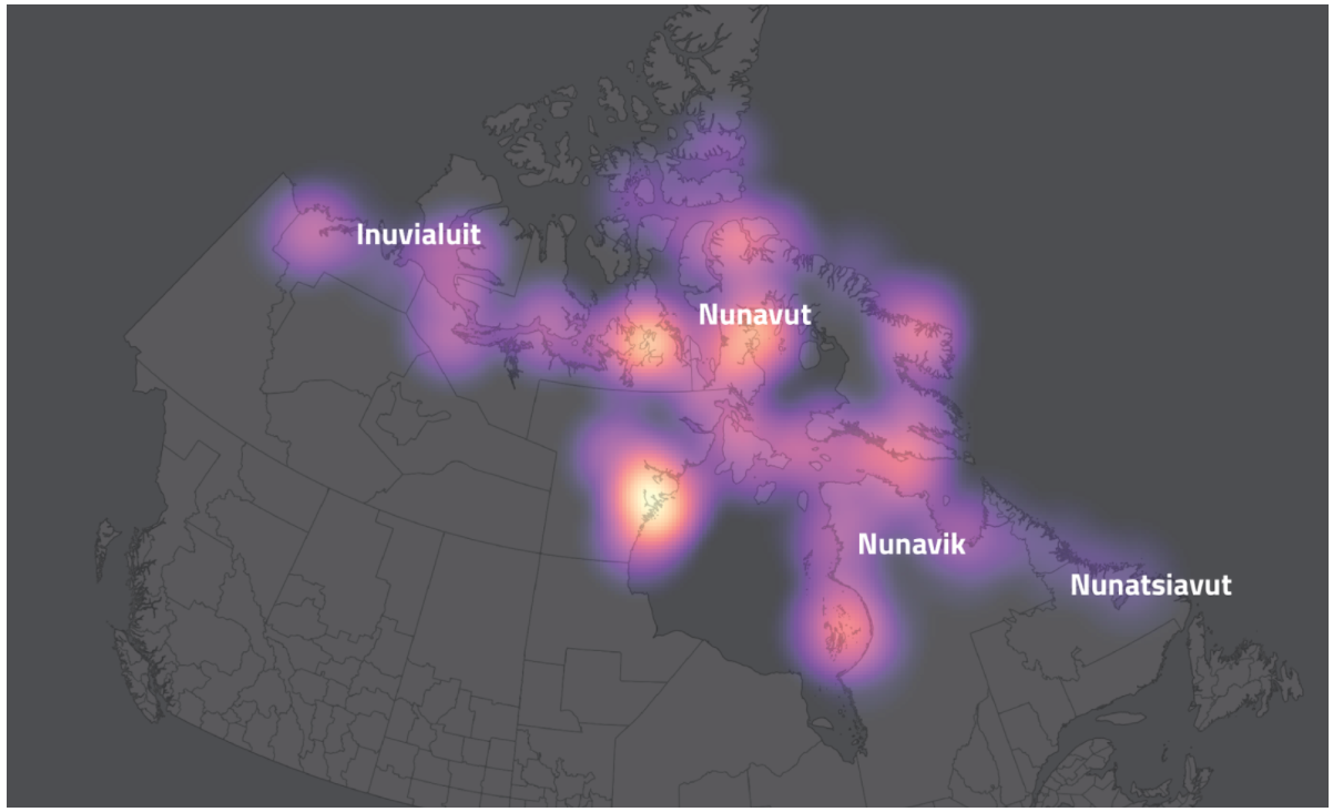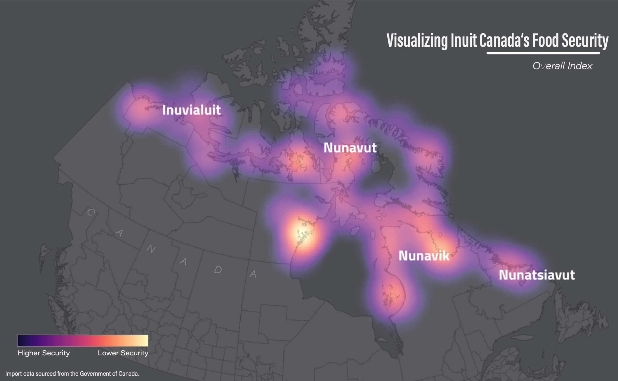 Inuit Nunangat, the homeland of the Inuit people, is located in the northern region of modern Canada. We seek to identify and analyze food insecurity patterns in Inuit Nunangat by constructing a heat map based on an index that combines individual perceived food security, proximity to grocery stores, ability to harvest (fishing, hunting, gathering), and population density. Issues surrounding Indigenous rights and climate change in Canada accelerate the need for this study.